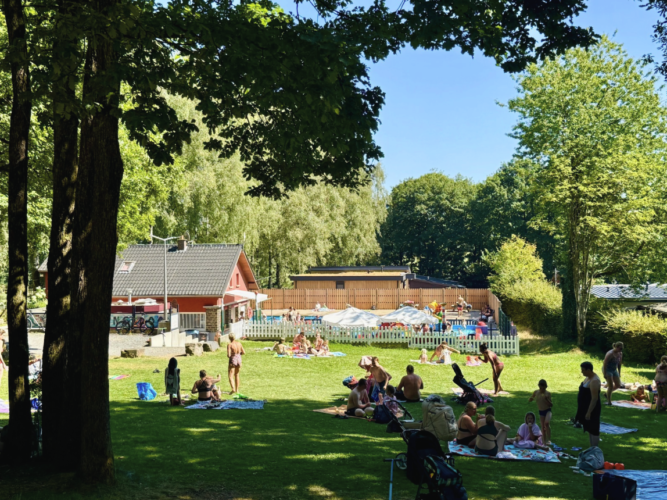 Das Freibad lädt zum Plantschen und Rutschen ein. Das beheizte Freibad ist während der Sommermonate für unsere Campinggäste geöffnet. Für die kleinsten Gäste gibt es ein spezielles Kleinkinderbecken. Perfekt für einen Tag Abkühlung während warmer Sommertage. Neben dem Freibad befindet sich eine Liegewiese, wo Sie sich herrlich entspannen und sonnen können.